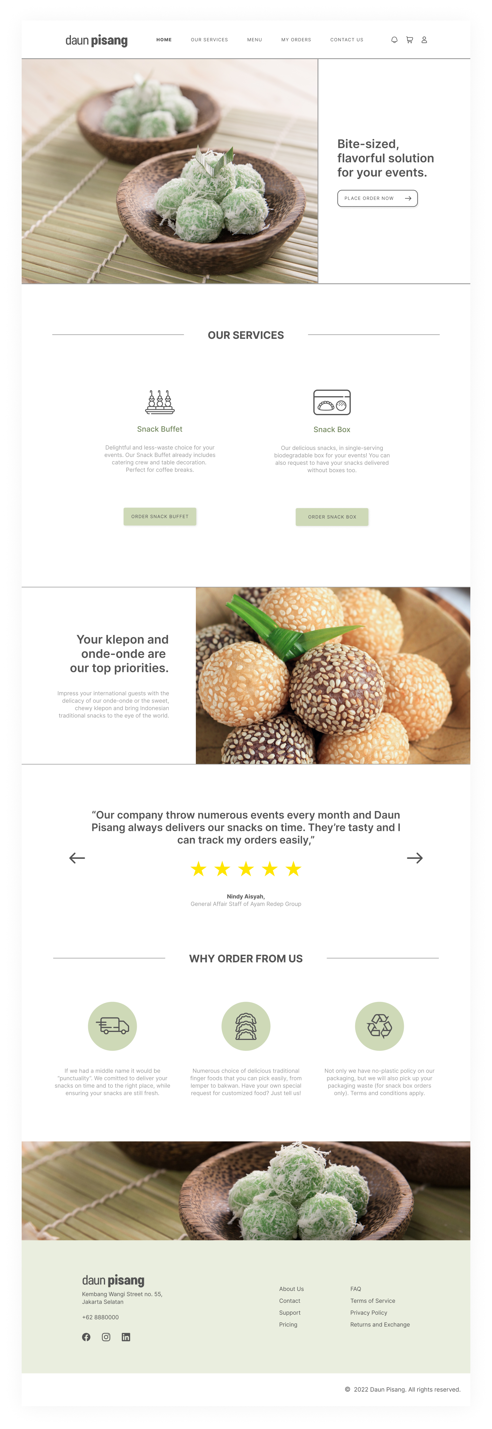 The landing page has a big picture of klepon. Klepon is one of the most popular traditional snacks that you can find inside snack boxes regularly.